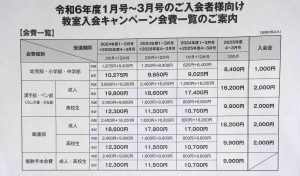 日本習字会費一覧(1月から)