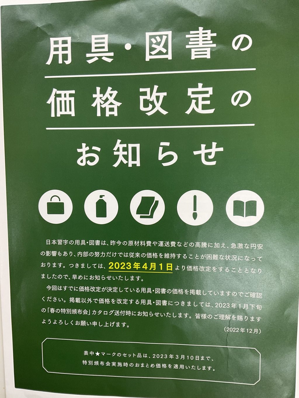 日本習字用具改定のお知らせ
