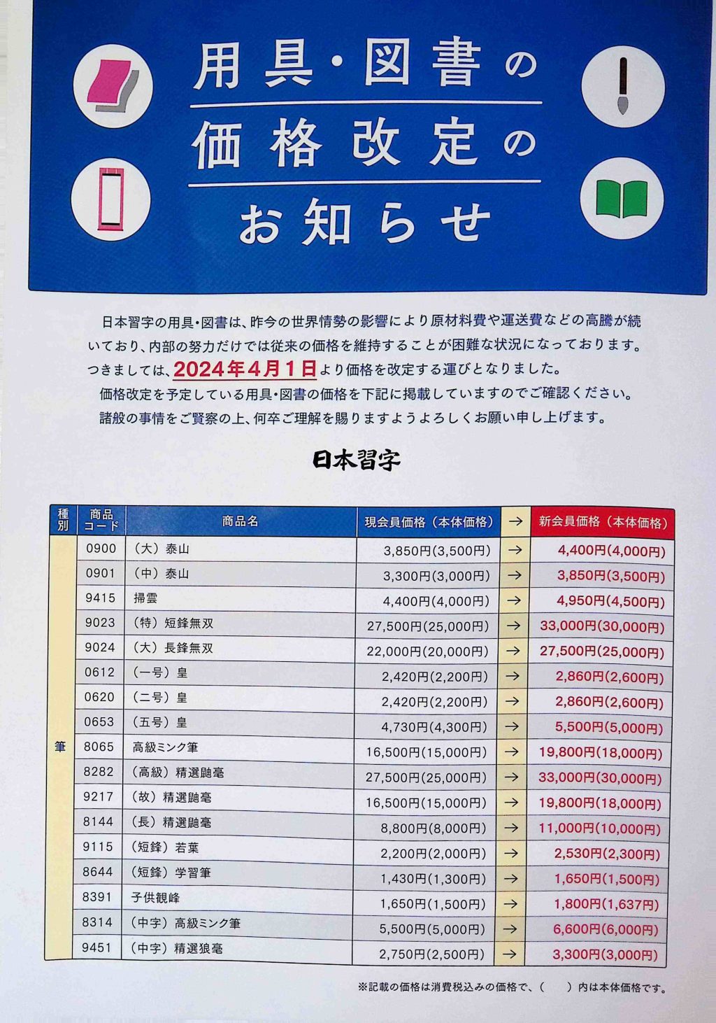 まなかな主宰遠山ちひろです。2月1日から期間限定にて用具販売がございます。(春の頒布会♪) 限定商品などお求めいただけます! また4月1日より半紙を始めとする一部用具の価格が上がります。 ぜひ、この機会にまとめ買いをご利 […]